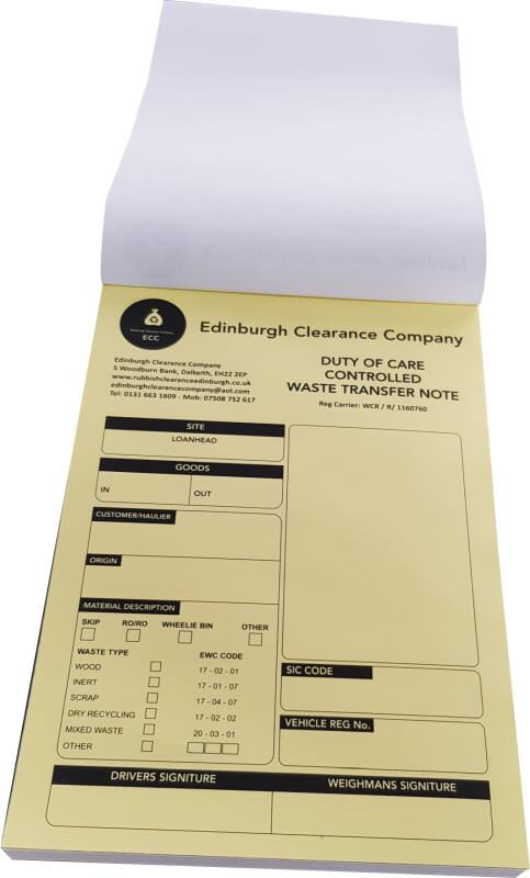 Printed NCR (no carbon required) sheets have many uses such as receipts invoices, order forms, staff time sheets etc. Whatever you plan to use them for, we can help by offering a complete NCR printing service in Edinburgh. From design to the finished printed product, customised to your bespoke requirements.