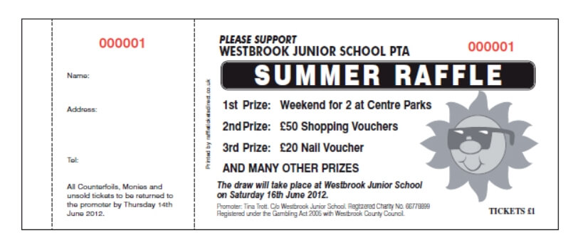 Send the above information to us and we will email you a proof to check. Alternatively you can download a template to design your own draw ticket.