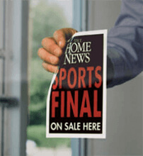 These cling onto windows or smooth plastic surfaces by static alone and are easily removable. Static cling stickers come in white or clear see through material. Typically used for non-permanent window graphics, sales / special offers etc. Can be upto 1 meter wide x any length.